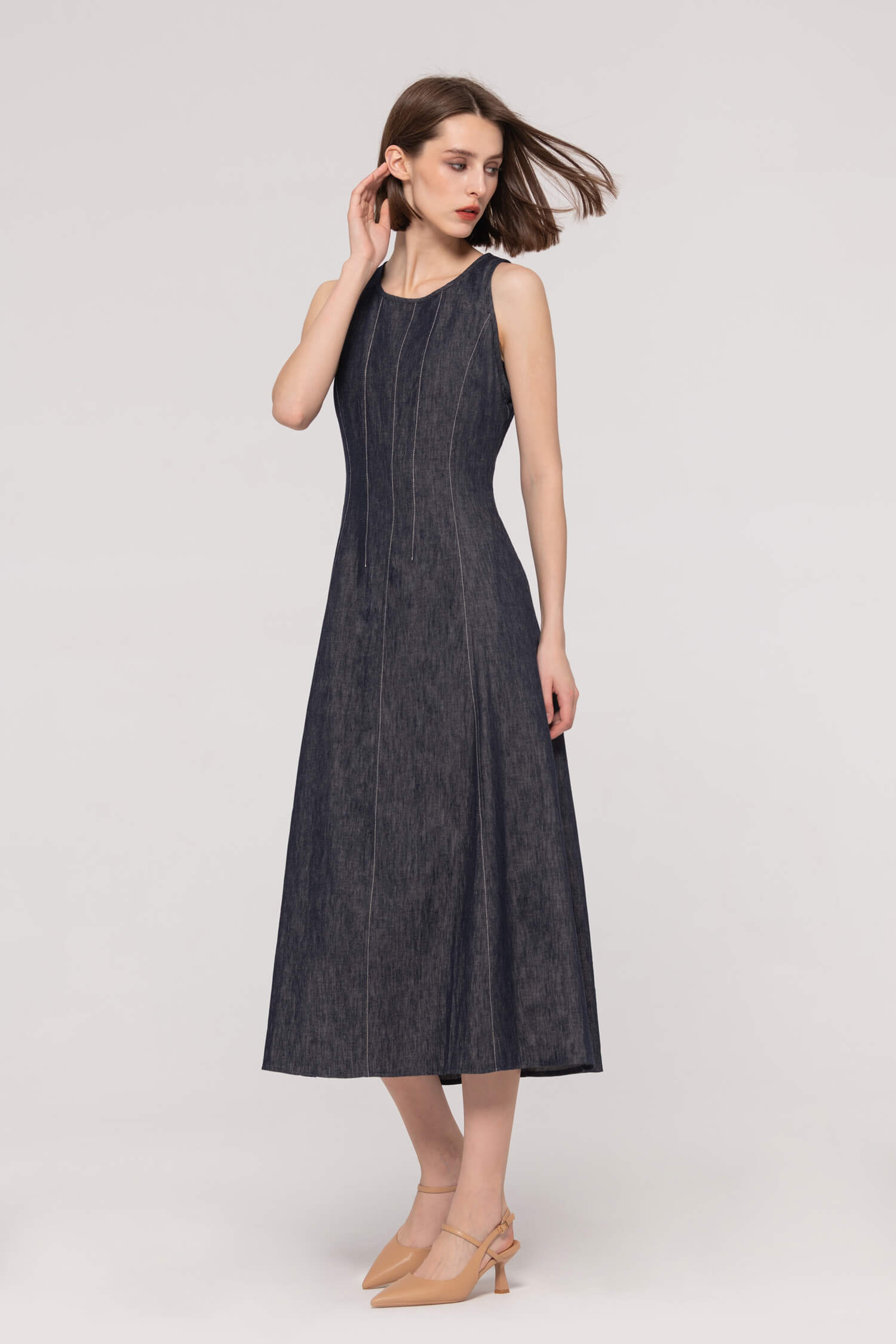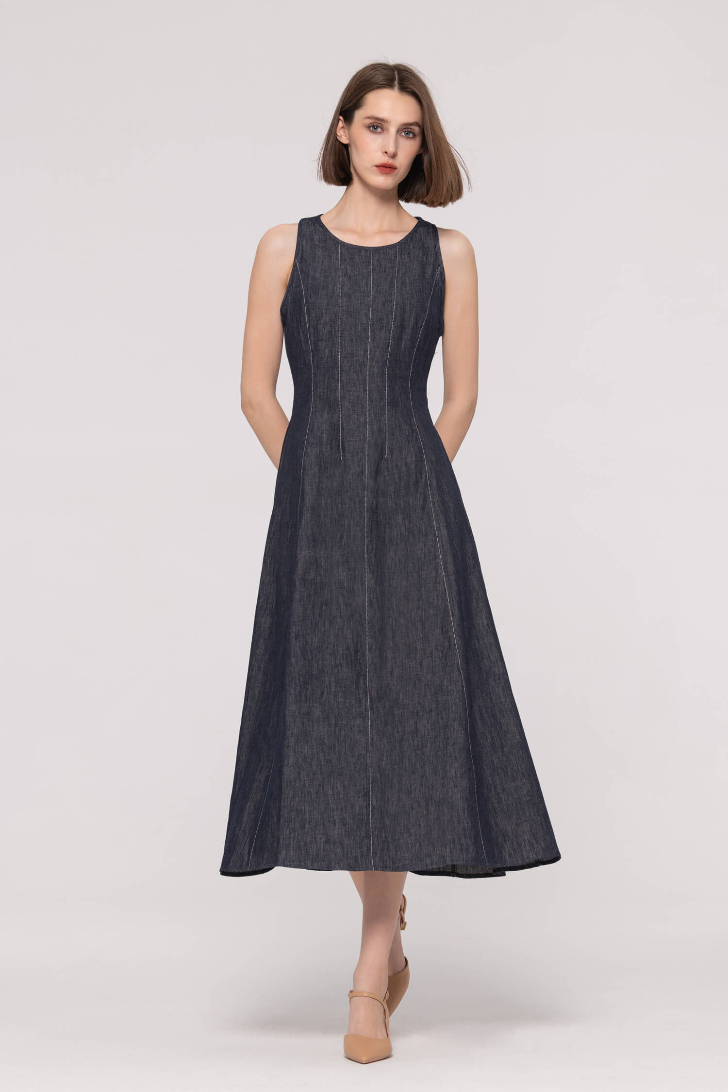 Stay effortlessly polished in this chic A-line denim dress, crafted from breathable cotton/linen with contrast stitching and odor-resistant technology. Perfect for back-to-back meetings or after-work cocktails, it keeps you cool and confident all day while looking office-perfect - no ironing needed for all-day crisp style.