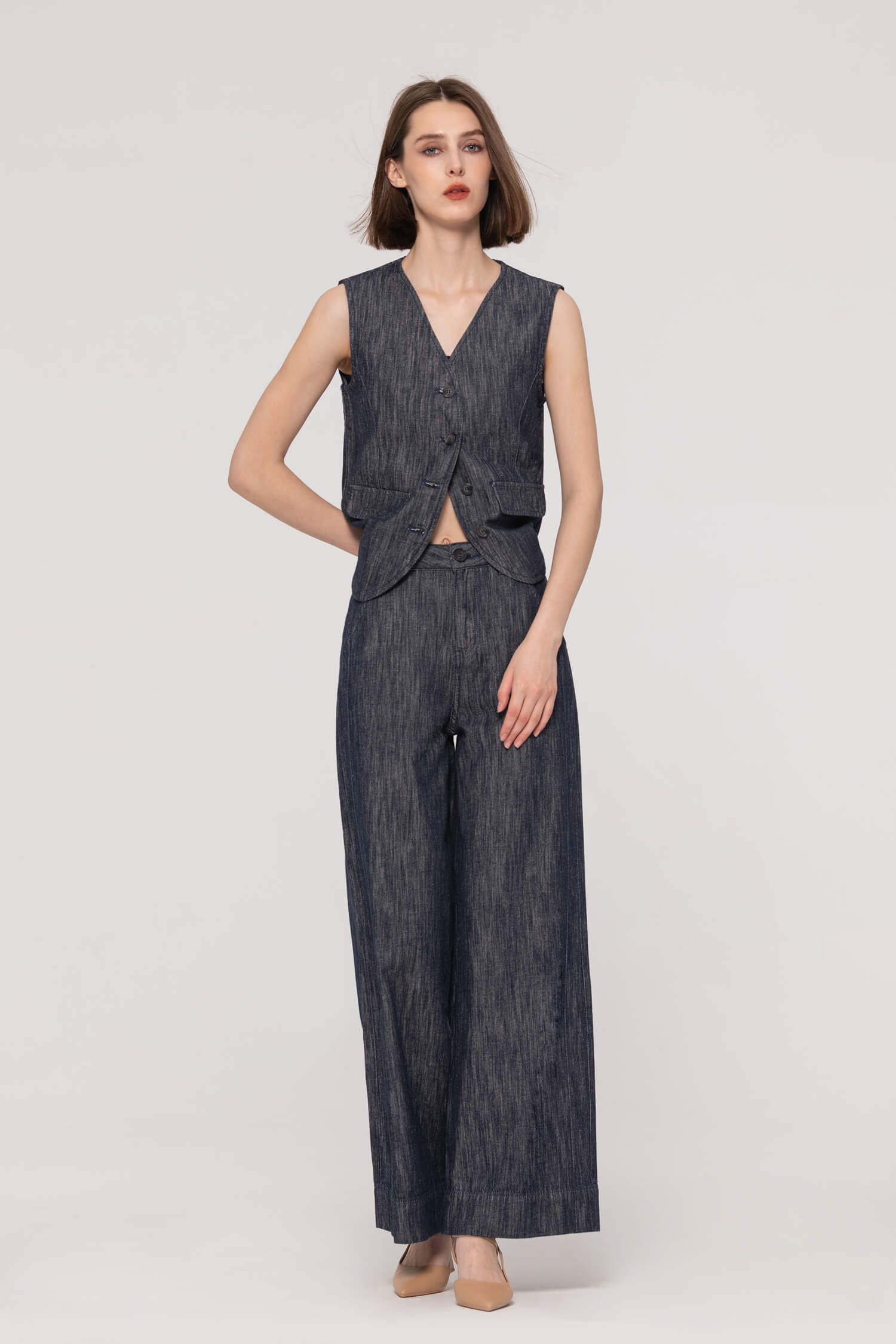 These sustainably crafted tailored jeans feature a sleek cotton-hemp blend with angled front pockets for a polished yet breathable office look. Designed for the eco-conscious professional, they keep you boardroom-ready during back-to-back meetings while feeling as fresh as your favorite weekend denim—seamlessly transitioning from presentations to after-work networking with planet-friendly style.