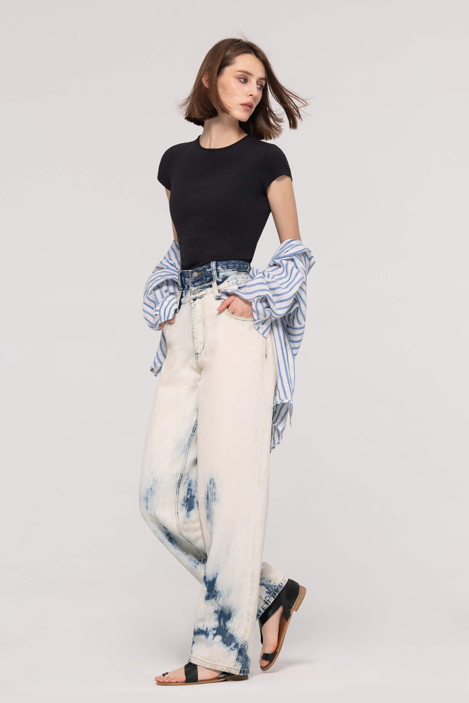 These cutting-edge 2025 jeans feature a bold faux double-waist design and handcrafted tie-dye bleach effects that redefine denim artistry. Made for fashion innovators, they'll transform your street-style moments and gallery visits into runway-worthy statements—turning every outing into an opportunity to showcase your avant-garde edge with confidence.