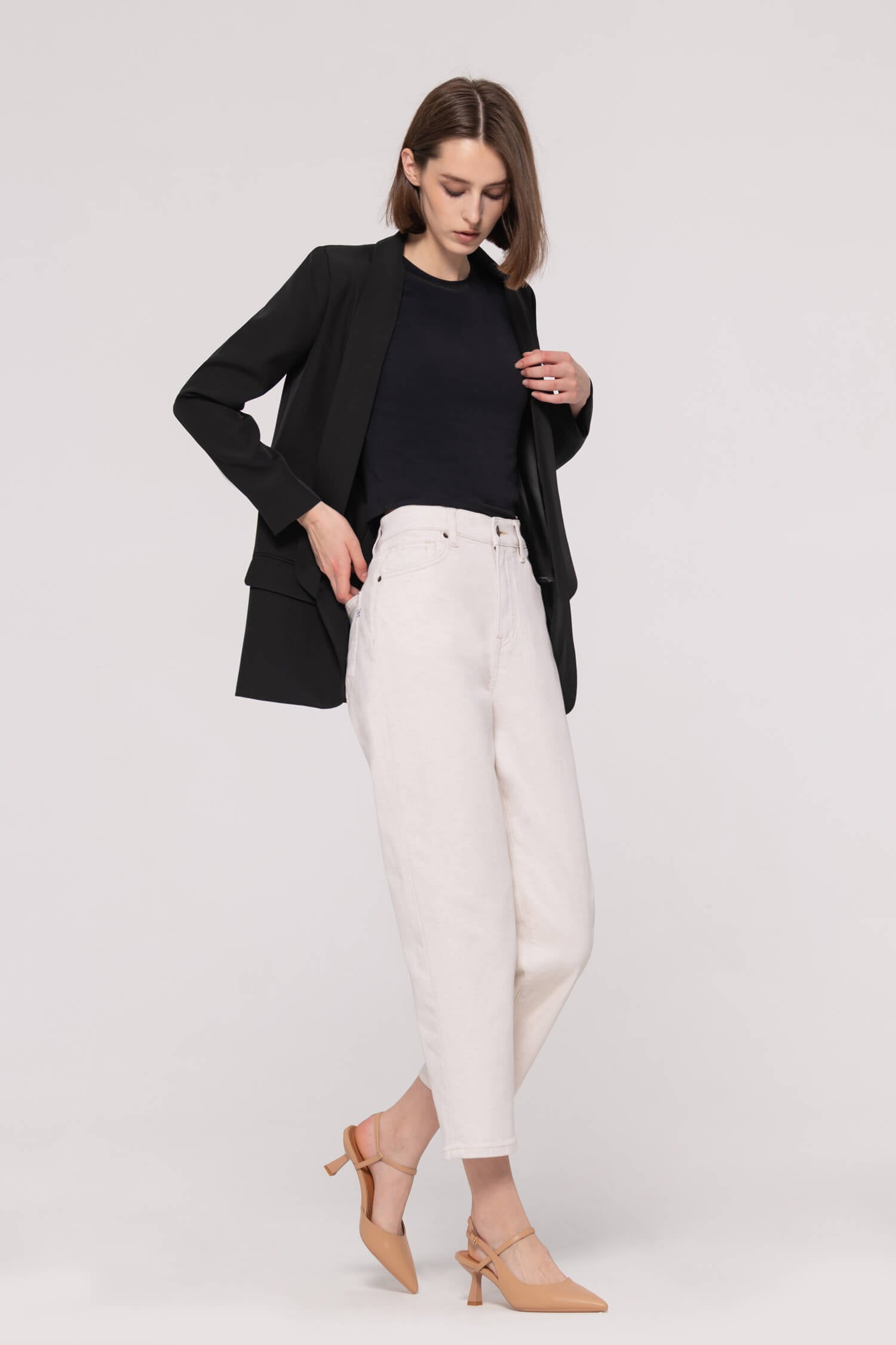 These eco-friendly workwear jeans blend cotton/linen for breathable comfort without extra washing, featuring a sleek straight-leg cut and stylish contrast stitching. Perfect for the office, they keep you looking polished while feeling fresh all day - ideal for back-to-back meetings or after-work socials.