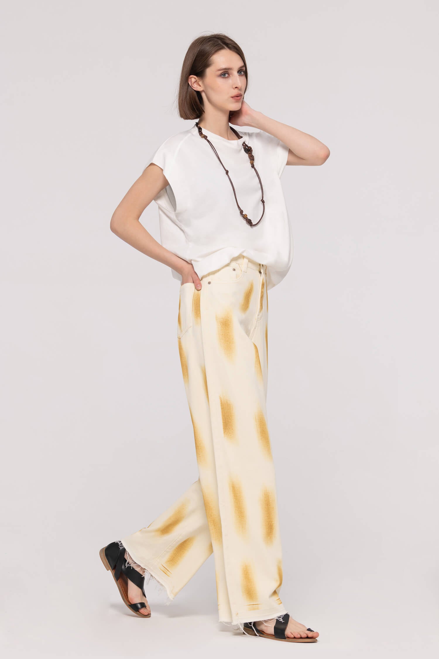 These fashion-forward wide-leg jeans feature an allover print design that masterfully blends stretch comfort with runway-ready style. Perfect for weekend wear, they'll take you from brunch dates to shopping trips in effortless chic—keeping you Instagram-ready while feeling as comfortable as your favorite loungewear.