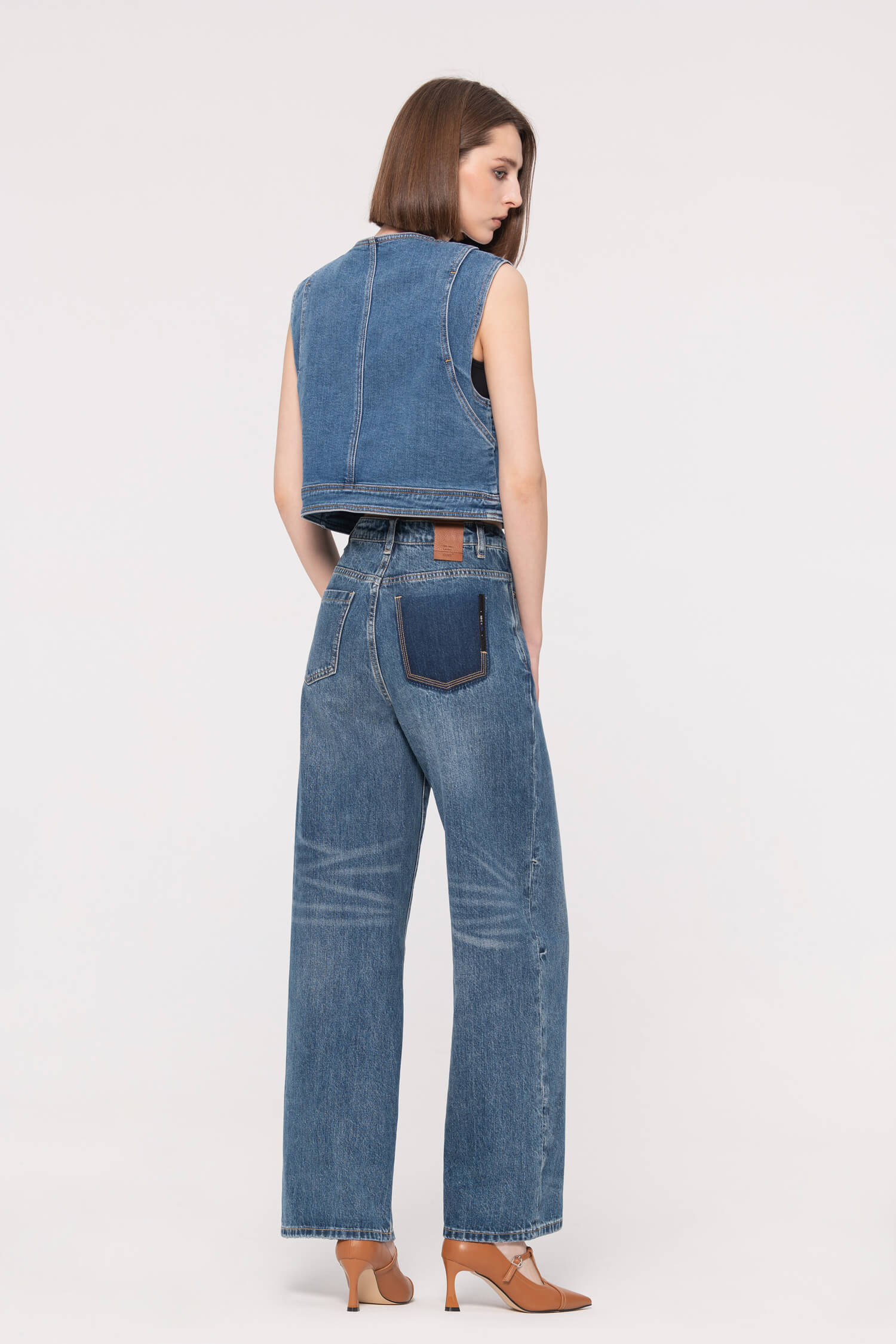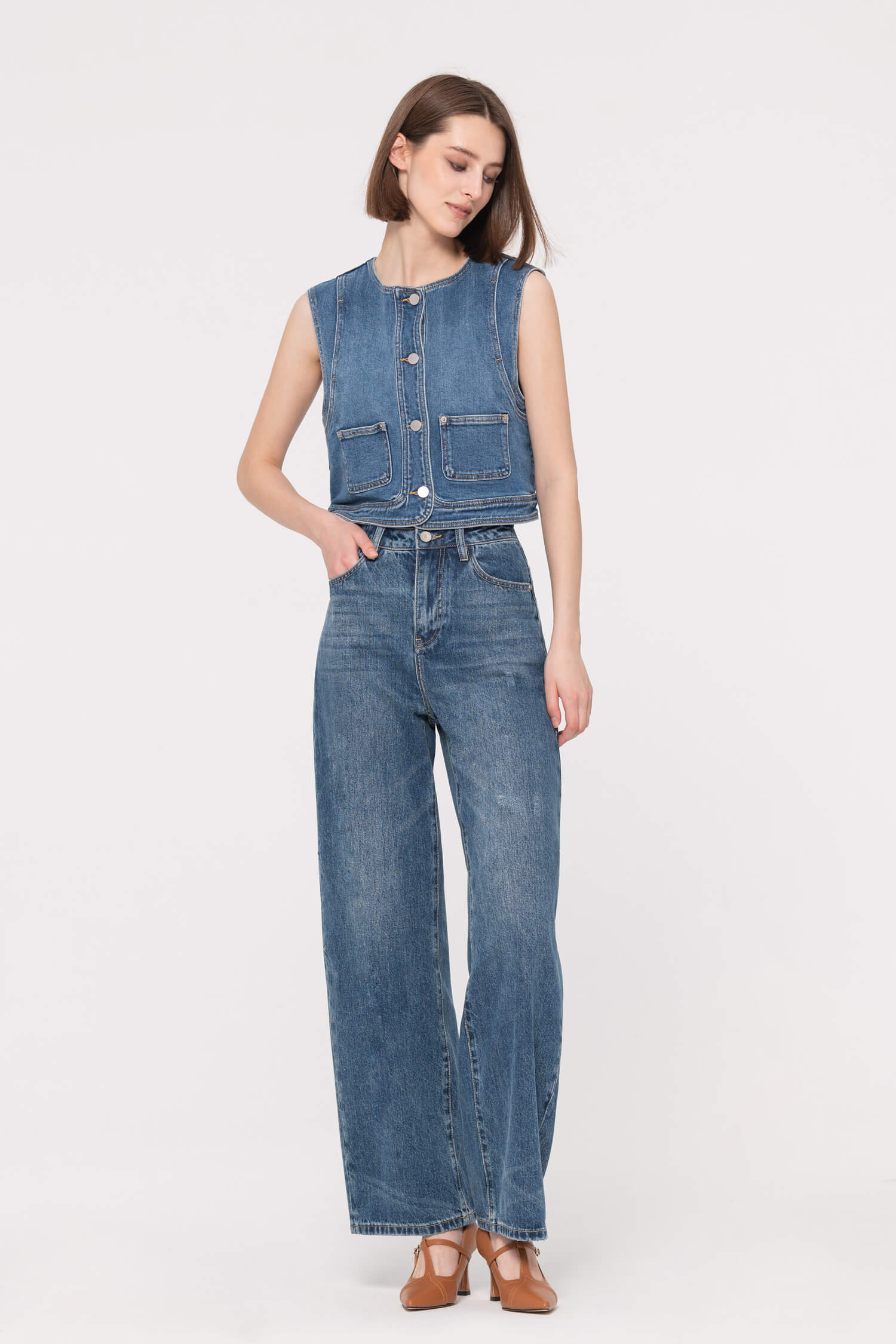 These office-chic wide leg jeans feature contrast faux pockets and a flattering high-waist elongating fit. Perfect for 9-to-5 or weekend wear, they keep you looking polished through meetings while feeling as comfortable as your favorite loungewear - effortlessly transitioning from desk to dinner with stylish ease.
