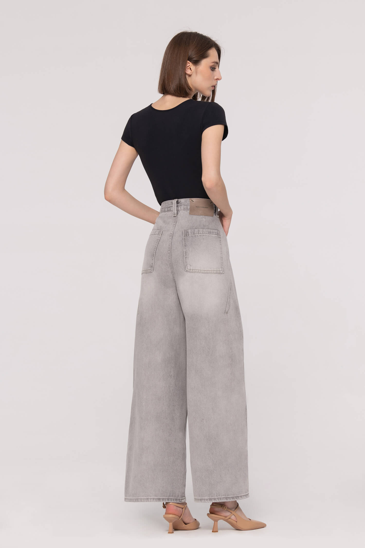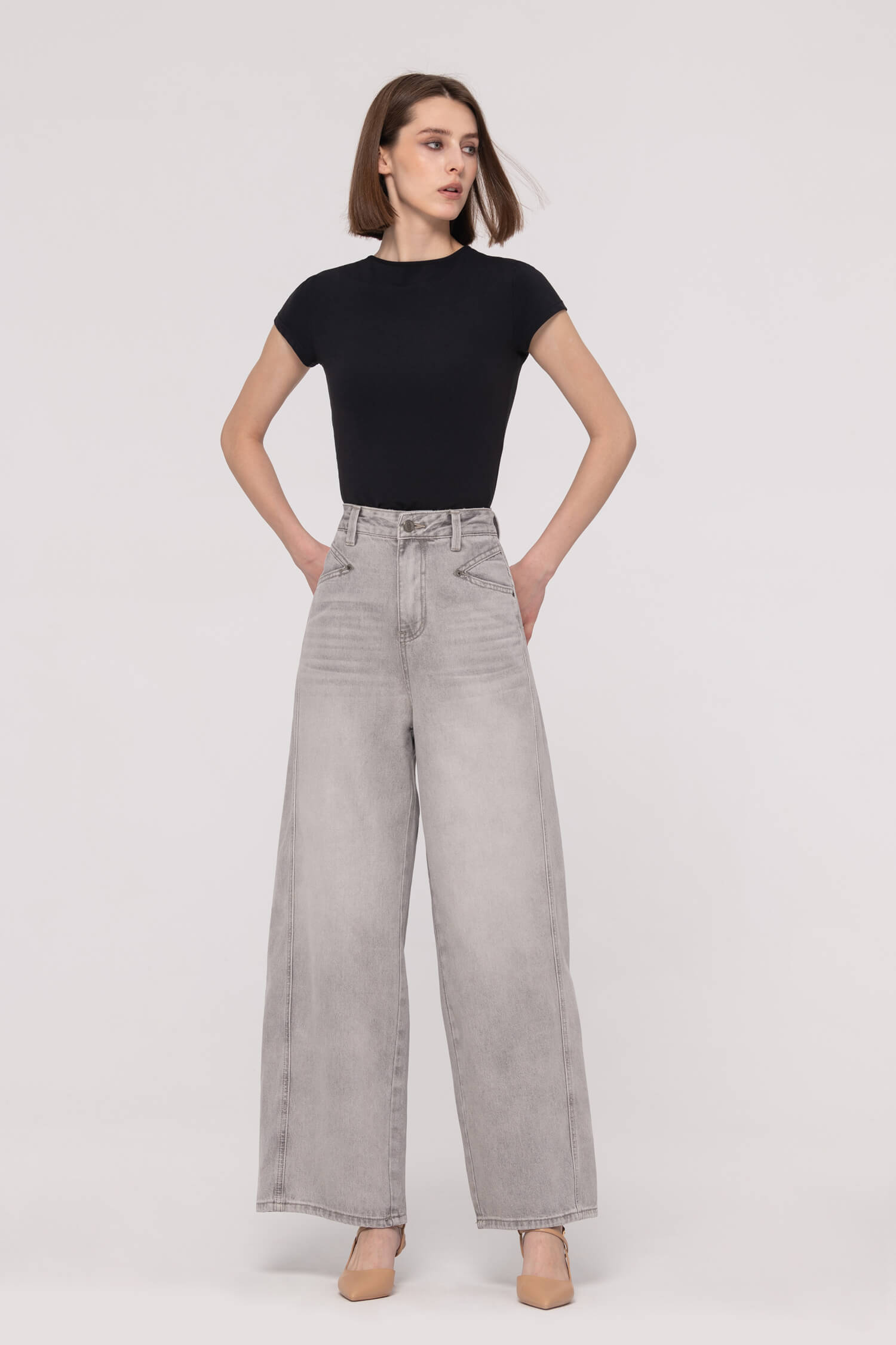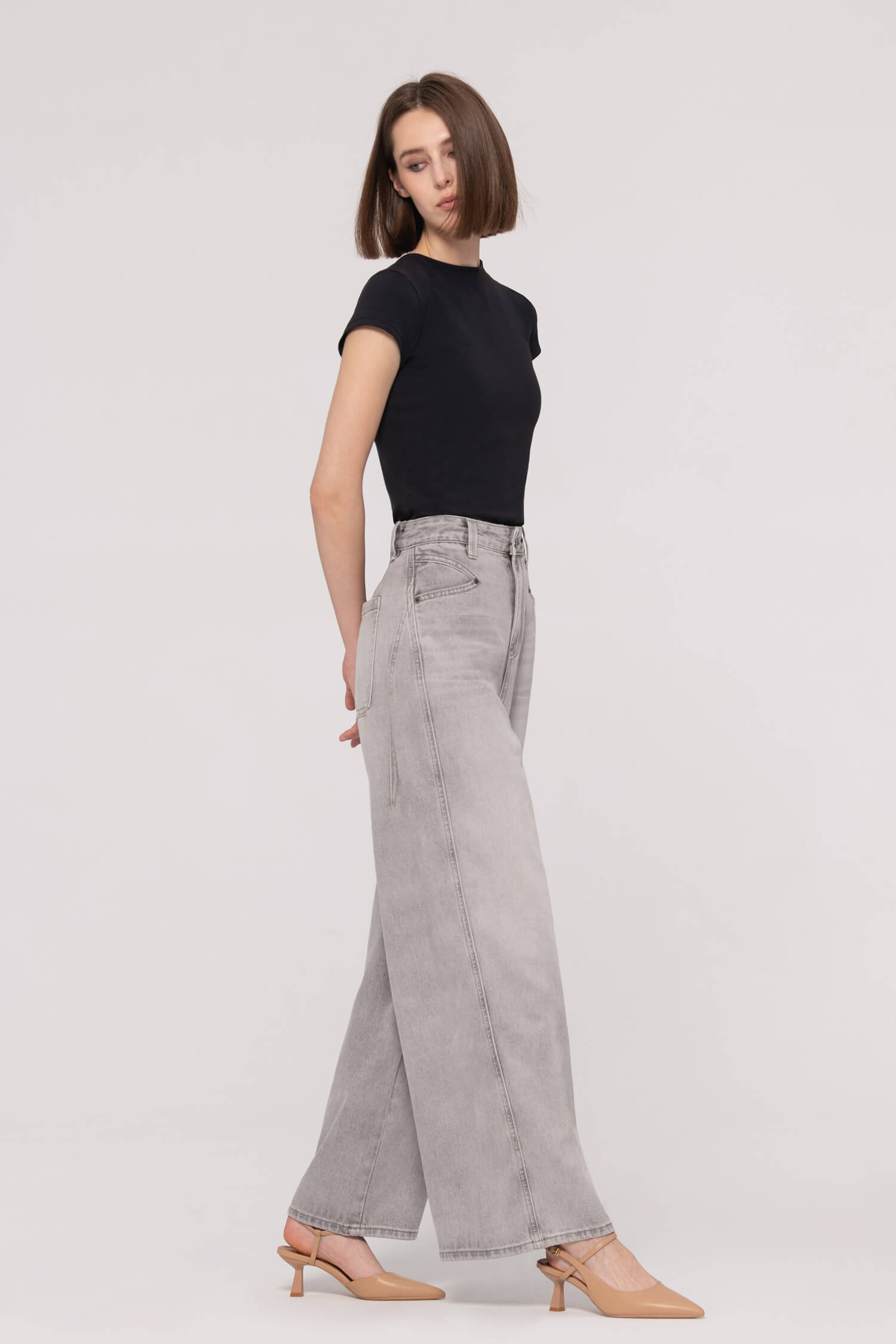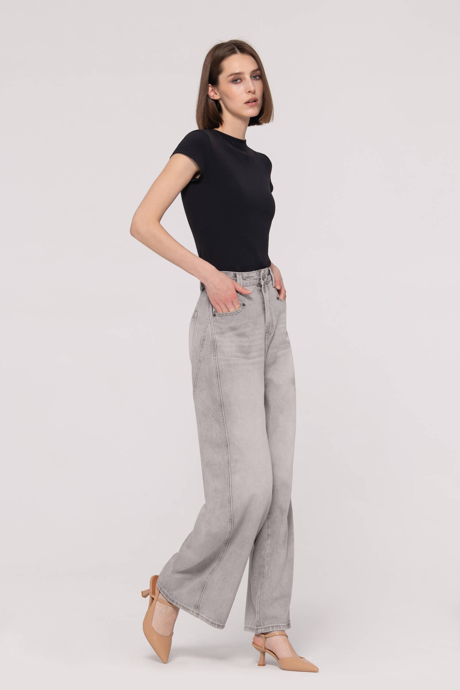 These office-ready light grey wide-leg jeans feature an innovative front pocket design and forward-set side seams for all-day comfort and leg-lengthening elegance. Perfect for power meetings or client dinners, they keep you looking executive-sharp while moving effortlessly - no more tugging or adjusting when transitioning from desk to evening engagements.